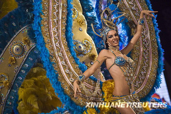 2月5日,在西班牙大加那利島的拉斯帕爾馬斯,一名表演者身穿名為“阿凡達”的舞臺服裝參加狂歡節活動。新華社/路透