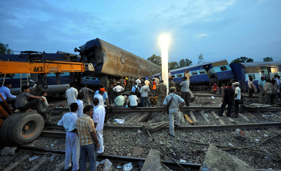 印度客運列車出軌事故死亡人數升至35人 7月10日,在印度北方邦法塔赫布爾地區馬爾瓦車站附近,人們在客運列車出軌事故現場救援。據印度媒體10日報道,該國北部當天發生的客運列車出軌事故死亡人數已上升至35人,受傷人數上升至200人。 新華社發