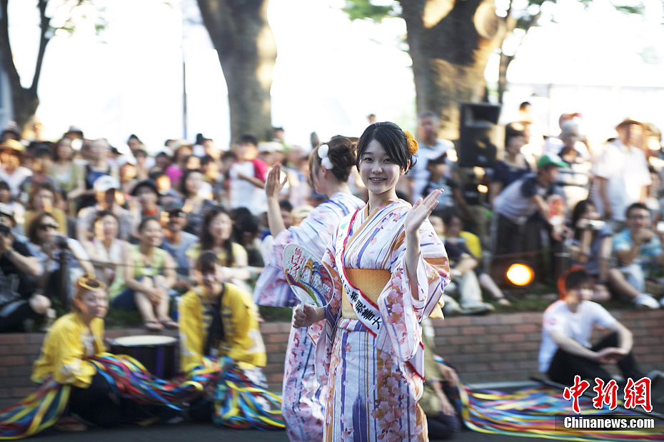 7月16日到17日,日本地震災區宮城縣仙臺市舉行六魂祭大型活動。本次活動首次把日本東北六縣的各自的傳統夏日慶典活動匯聚一堂,包括青森燈籠祭,秋田竿燈祭,巖手縣盛岡SANSA舞祭,山形花笠祭,仙臺七夕祭,福島草鞋祭。主辦方預計兩天將有10萬人前來觀禮,但16日首日人數已經超過10萬人。同時高溫天氣導致25人因中暑而暈倒。主辦方不得不提前中斷本次活動。中新社發 孫冉 攝