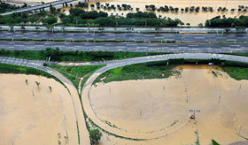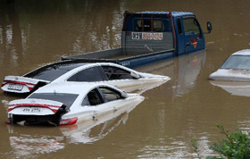 日本新潟縣和福島縣29日起普降暴雨,一些河流泛濫、決堤,導致一人死亡、5人失蹤。新華社/路透