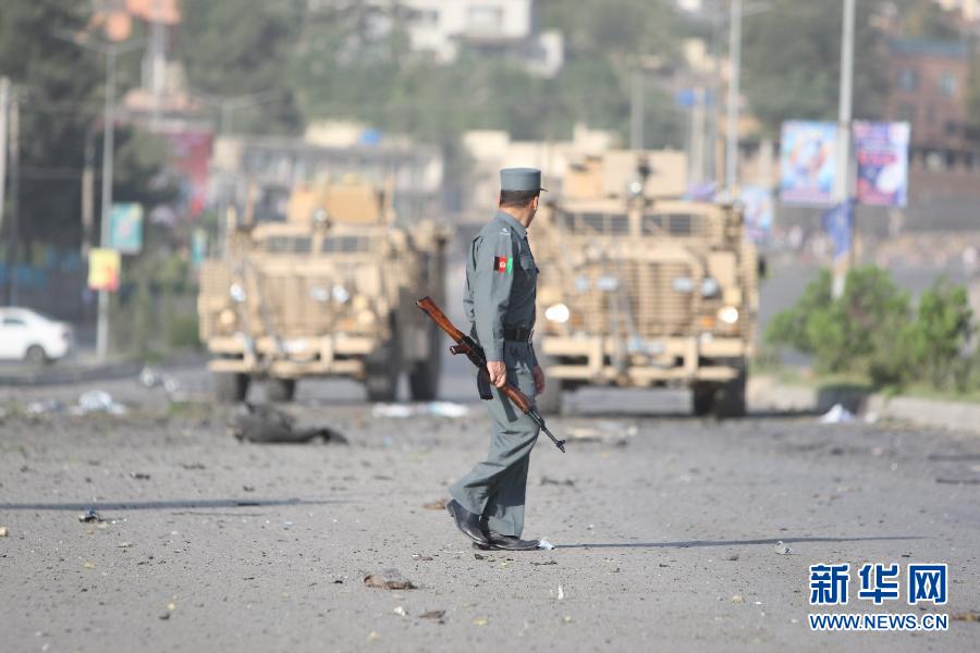 8月19日,在阿富汗喀布爾市內,阿富汗警察在爆炸現場附近警戒。
