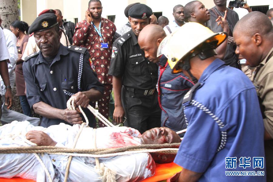 8月26日,在尼日利亞首都阿布賈的聯合國機構大樓附近,一名爆炸事件中的傷者被轉移。尼日利亞警察總局副發言人耶米·阿賈伊當日在電話中向新華社記者證實,位于尼首都阿布賈的聯合國機構大樓當天早上發生爆炸。記者從當地醫院獲悉,至少有2人在爆炸中死亡。新華社發(費米·伊帕耶攝)