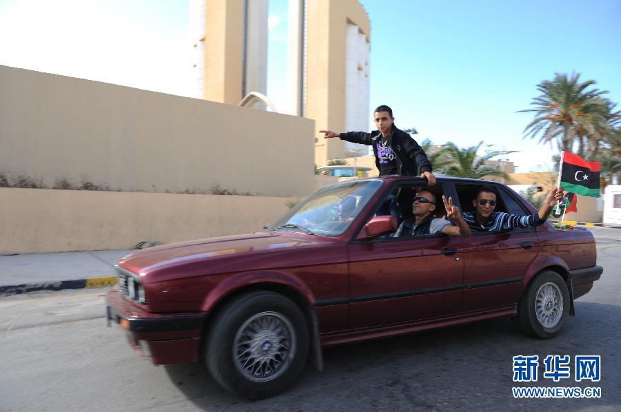 的黎波里民眾游行慶祝卡扎菲之死 ( /24)