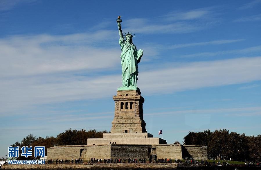 這是10月28日拍攝的美國紐約自由女神像。當日,美國紐約自由女神像迎來125歲生日,之后會關閉一年進行整修。落成于1886年10月28日的自由女神像是法國政府慶祝美國獨立100周年的賀禮。1984年,自由女神像被列入世界遺產名錄。新華社記者申宏攝