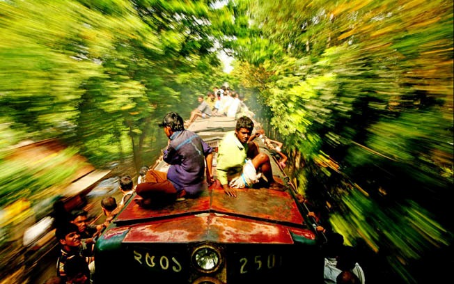 人們在結(jié)束了一天的工作后就坐在火車頂上回家。因?yàn)榛疖嚐o法容納下每個人,所以他們就坐在車頂上。這些乘客愿意坐在車頂上的理由很簡單,因?yàn)椴挥没ㄥX。