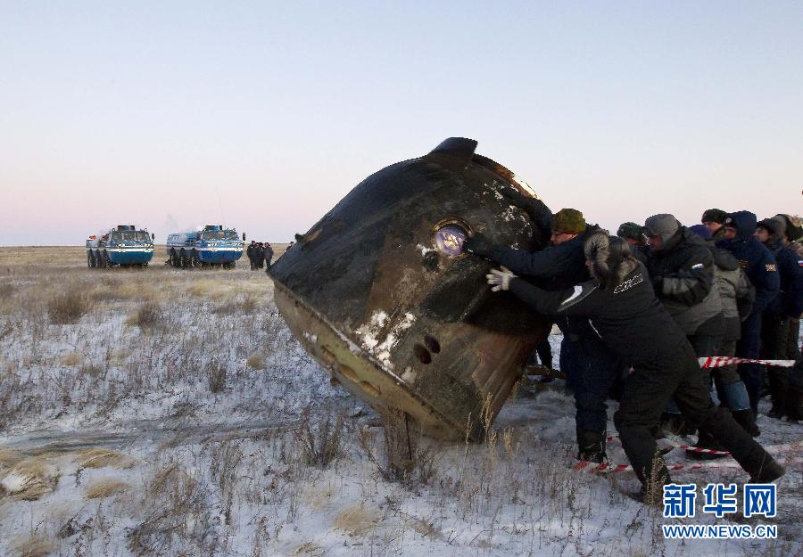在太空度過(guò)167個(gè)晝夜的俄羅斯宇航員謝爾蓋·沃爾科夫、美國(guó)宇航員邁克·福蘇姆和日本宇航員古川聰當(dāng)天離開(kāi)空間站并進(jìn)入與之對(duì)接飛行的載人飛船。在同空間站自動(dòng)脫離3小時(shí)25分后,飛船返回艙順利降落在哈薩克斯坦中部城市阿爾卡雷克以北的草原上。新華社/路透