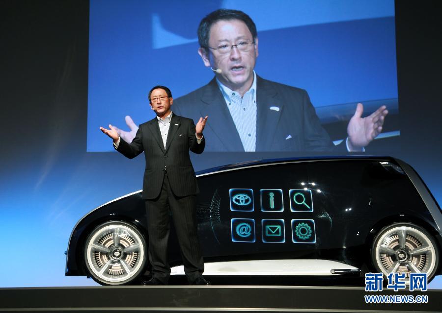 11月28日,在日本東京,豐田汽車公司總裁豐田章男在介紹下一代智能概念車。日本豐田汽車當日首次向媒體公開下一代智能概念車“Fun-Vii”!癋un-Vii”長約4米,寬約1.7米,車身外表兼具觸摸屏作用,駕駛者僅憑觸摸車身就能完成充電、點檢、信息傳達等功能,還能切換車身顏色以及類似電腦桌面的圖案。這款智能概念車所需的驅動、控制、多媒體等軟件均能聯網更新!癋un-Vii”將在12月3日的東京國際車展上與公眾見面。新華社記者馮武勇攝