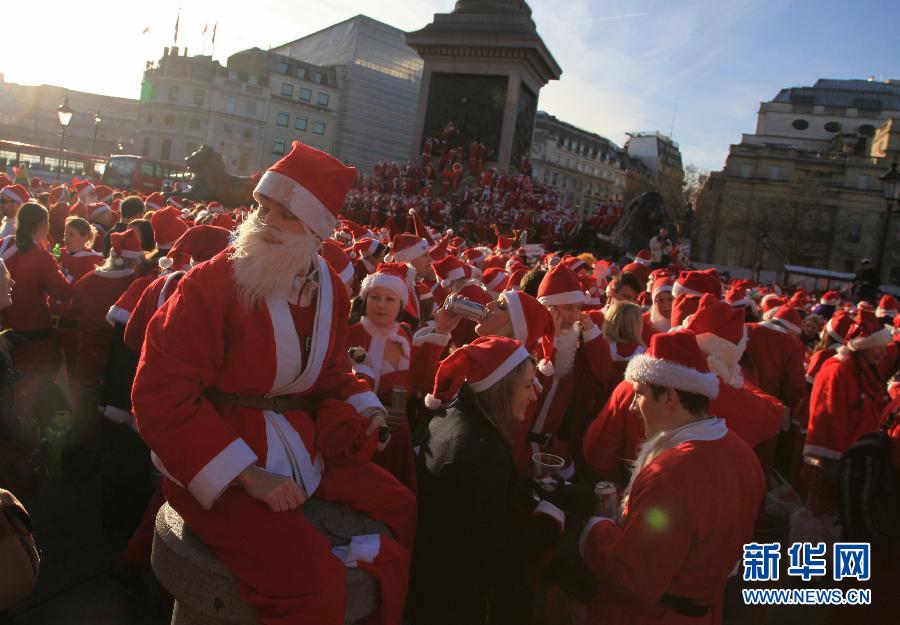 12月10日,在英國首都倫敦,打扮成圣誕老人的狂歡者們聚集在特拉法加廣場。當(dāng)天,倫敦舉行一年一度的圣誕老人狂歡,上千名打扮成圣誕老人的狂歡者聚集在此,慶祝即將到來的圣誕節(jié)。 新華社發(fā)(相梅攝)