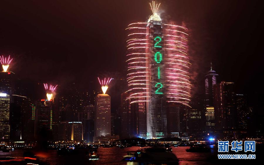 當日零時許,“新年倒數(shù)詠香江”活動在香港舉行,活動中用燃放焰火慶祝2012新年的到來。 新華社記者 陳曉偉 攝