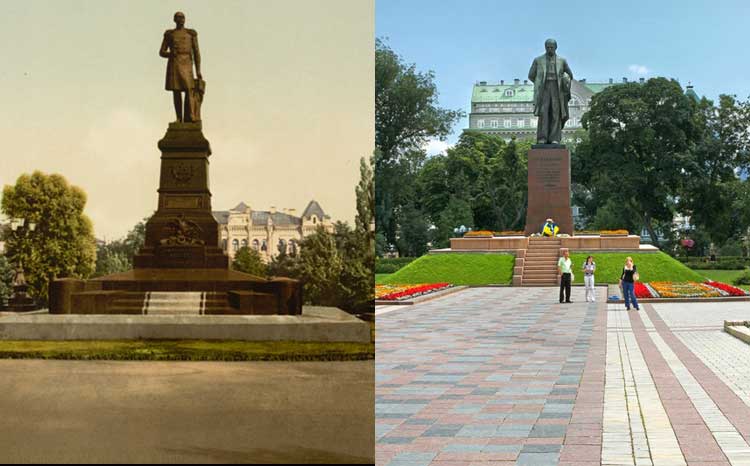 原先的沙皇尼古拉一世塑像被塔拉斯·舍甫琴科(譯注:Taras Shevchenko,烏克蘭詩人、畫家)所取代。