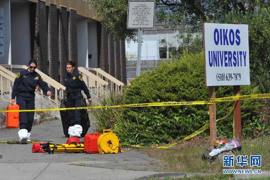 美國加利福尼亞州奧克蘭市警方3日說,奧伊科斯大學校園槍擊案嫌疑人作案動機主要是為了泄憤和報復。43歲的韓裔槍擊案嫌疑人溫戈(音譯)在被正式拘押后向警方供認,他泄憤的目標是奧伊科斯大學的一位女主管。溫戈涉嫌于2日在奧伊科斯大學開槍殺死7人,致傷3人。新華社發(fā)(劉藝霖攝)