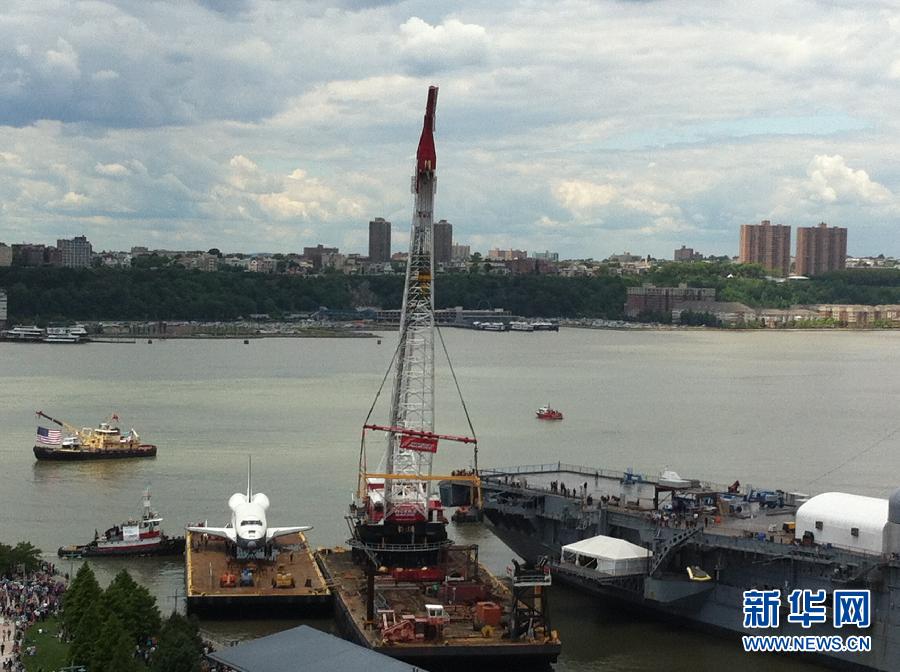 6月6日,在美國紐約86號碼頭,“企業”號航天飛機停放在“無畏”號航空母艦旁邊。當天,“企業”號航天飛機正式落戶無畏海空博物館!捌髽I”號航天飛機是美國航天飛機計劃中第一架原型機,它一直被用來進行重返地球測試,從未進入過太空。美國航天局去年將其航天飛機機隊退役,集中精力發展可超越近地軌道的下一代太空飛船。 新華社記者伍婧丹攝
