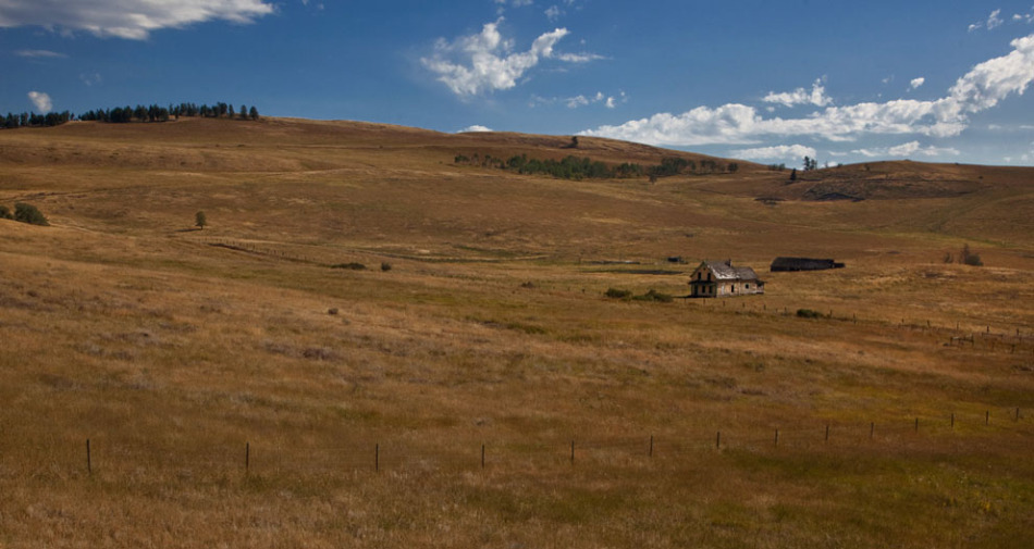 加拿大不列顛哥倫比亞省奧索尤斯,一座長期廢棄的農(nóng)舍矗立在空曠的原野上。
