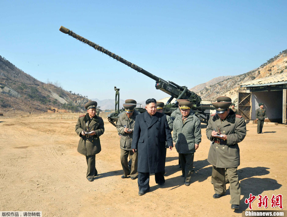 據朝中社于當地時間3月12日發布的照片顯示,當地時間3月11日,朝鮮最高領導人金正恩視察了前線的月乃島防御隊和朝鮮人民軍第641部隊所屬遠程火炮分隊。