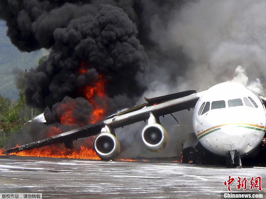 印尼機場一貨機卸貨時油桶掉落引發大火 ( /3)