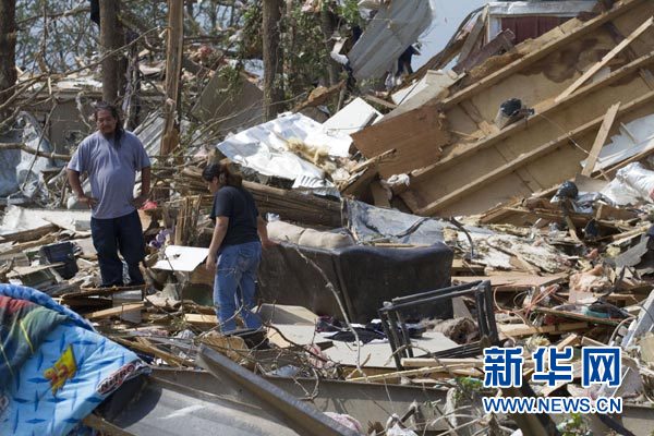 5月20日,在美國俄克拉何馬州肖尼,人們在房屋廢墟中收拾物品。 新華社發(馬庫斯·迪保拉攝)