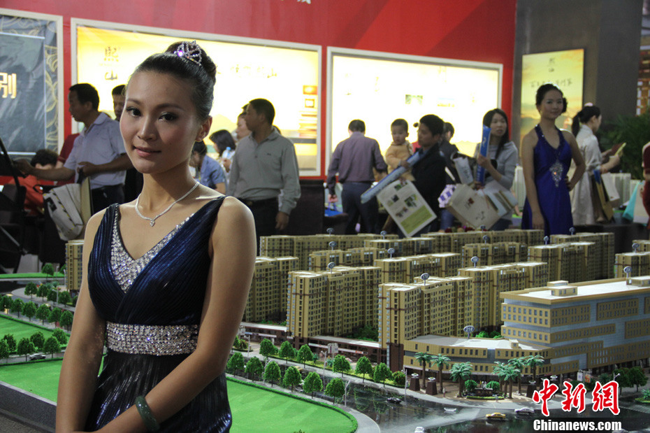 5月26日,湖南長沙第31屆房地產交易展示會在長沙紅星國際會展中心開幕。房產商們請來了美女“房!睘樽约旱臉潜P助陣。楊華峰 攝