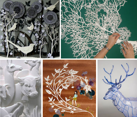 圖中這些裝飾品給人感覺猶如從森林、海洋走進了一個個繁復的場景,它們的完成通常需要數月。這些驚人的紙藝術品出自多位藝術家之手,并借此反駁了紙質材料不可反復利用的觀點。熟練的藝術家們通過切,折,粘,將顏色各異,紋理不一的紙張變成雕塑、拼貼畫和插圖,利用各種方式將紙的特性發揮得淋漓盡致,也算是對其自然本質的回歸吧。