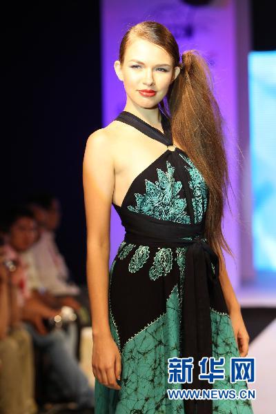 7月12日,在印度首都新德里國際展覽中心,模特在展示時裝。第47屆印度國際服裝節于7月12日至14日在這里舉行,來自世界各地的幾十個服裝廠商、設計師們參加了此次服裝節。 新華社記者李毅剛攝