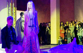 10月22日,在南非約翰內斯堡舉行的非洲時裝周上,模特展示莫桑比克服裝設計師泰沃·巴卡爾的作品。當日,為期三天的非洲時裝周在南非約翰內斯堡閉幕,來自莫桑比克、津巴布韋、坦桑尼亞和尼日利亞等國的服裝設計師的作品在閉幕日上進行了展示。新華社記者李啟華攝