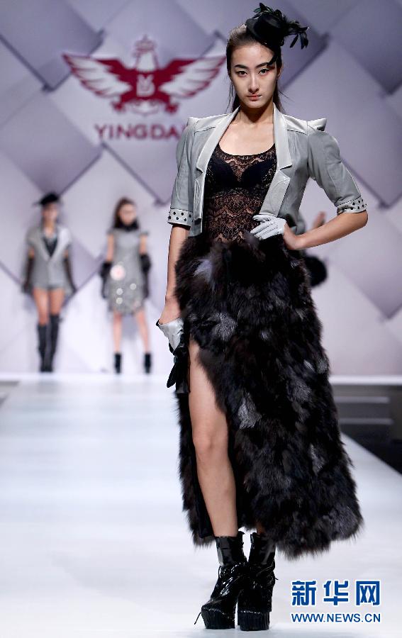 10月28日,模特在展示參賽作品。當日,中國國際時裝周舉行“第三屆應大杯中國時尚皮裝設計大賽”,在參賽的20名選手中,來自東北電力大學的老師孔祥梅奪得唯一金獎。新華社記者陳建力攝