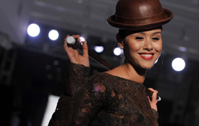 11月11日,車模在2011中國西南(昆明)國際汽車博覽會上展示一款轎車。當日,2011中國西南(昆明)國際汽車博覽會在昆明國際會展中心開幕。本次車展吸引了100多家國內外知名汽車廠商參展,共展出各種車輛近1000臺。在車展上,“香車美女”成為一道靚麗的風景線。新華社記者 藺以光 攝