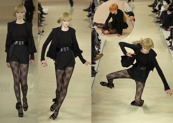 歷年T臺上摔跤事故頻頻,讓不少大牌模特吃盡苦頭出盡洋相。駕馭著10厘米以上的高跟鞋,模特在聚光燈下和無數攝影機前,以及萬眾目光下,轟鳴背景音樂中,邁著“搖晃”的貓步,要有多大勇氣才能讓自己顯得信心十足?讓我們來看看那些每一步都如履薄冰卻依舊運氣欠佳的模特們。