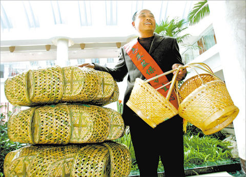 陳飛,一個提出“重提竹籃、提倡環(huán)保”的民間環(huán)保人士,給人送菜籃子這事,他可不是頭一遭了。早在2007年9月在中央電視臺的節(jié)目現(xiàn)場,陳飛就給國務(wù)院副總理曾培炎送過菜籃子,并受到了曾培炎的贊賞。這次開兩會,陳飛把56個竹籃分別送給56個民族的代表,意在宣傳少用塑料袋,給2987位代表每人送了一條手帕,意在提倡少用紙巾,節(jié)約資源。