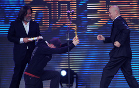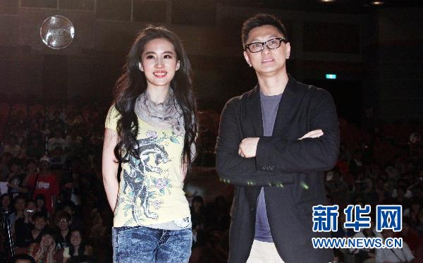 5月2日,2011版電影《倩女幽魂》導演葉偉信(右)、女主角劉亦菲作客臺北東吳大學。當日,2011版《倩女幽魂》導演葉偉信和女主角劉亦菲出席在臺北東吳大學舉行的電影宣傳造勢會,與大學生們面對面交流。 新華社發