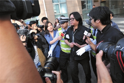 昨天,高曉松被從東城交通支隊帶出,大批記者到場圍堵采訪。