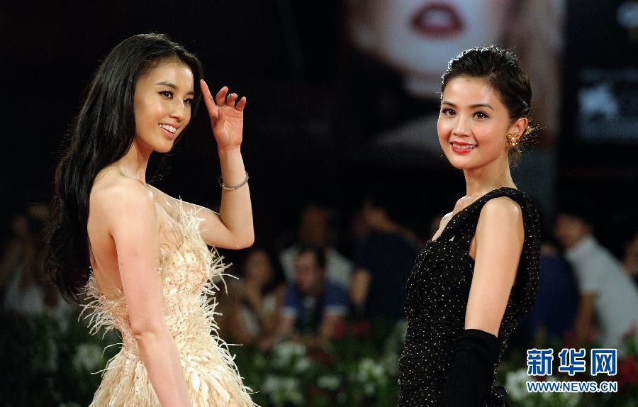 9月2日晚,在意大利威尼斯利多島,中國香港影片《白蛇傳說》主演黃圣依(左)、蔡卓妍亮相威尼斯電影節(jié)紅地毯。《白蛇傳說》當晚在威尼斯電影節(jié)舉行全球首映。 新華社記者王慶欽攝