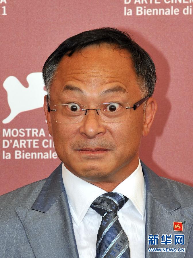 9月9日,在意大利威尼斯利多島,中國香港影片《奪命金》導演杜琪峰在威尼斯電影節上亮相時瞪起雙眼。 新華社記者王慶欽攝