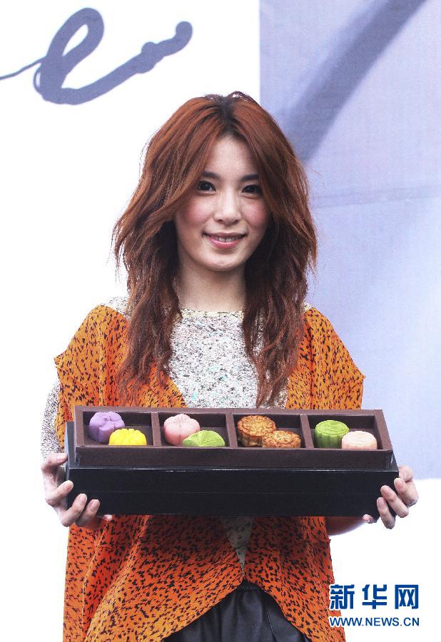 9月11日,在臺北微風(fēng)廣場,歌手田馥甄為歌迷送上中秋月餅。 當(dāng)日是臺灣演唱組合S.H.E成立十周年紀念日,歌手田馥甄在臺北市微風(fēng)廣場舉辦新專輯“my love”臺北簽唱會,好友陳嘉樺到場祝賀。從小就愛唱歌的田馥甄,用Hebe的名字加入演唱組合S.H.E出道。 新華社發(fā)