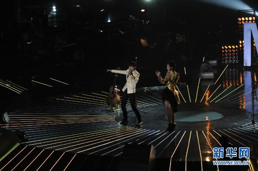 9月16日,段林希(左)和洪辰在演唱。當(dāng)日,湖南衛(wèi)視“2011快樂(lè)女聲”舉行總決賽冠軍爭(zhēng)奪戰(zhàn)。來(lái)自云南保山市的姑娘段林希力壓群芳,奪得全國(guó)總冠軍。 新華社記者 明星 攝