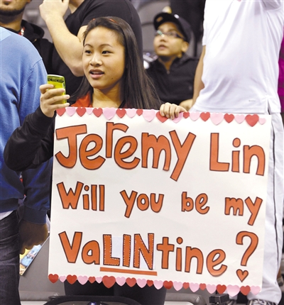 昨日,球迷又用林書豪的姓LIN創(chuàng)造了一個(gè)新詞VaLINtine(情人林)。