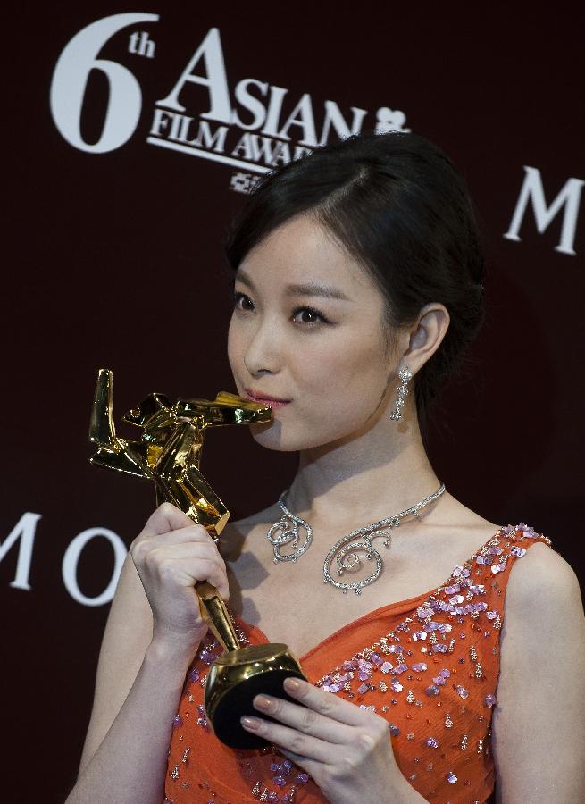3月19日, 倪妮以電影《金陵十三釵》奪得最佳新演員獎。當(dāng)日,第六屆亞洲電影大獎頒獎禮在香港舉行。 新華社記者呂小煒攝
