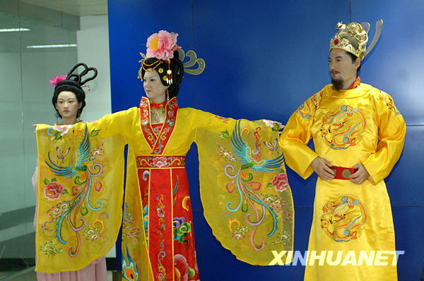 據陜西省參與2010年上海世博會工作領導小組辦公室介紹,由西安超人雕塑研究院制作的高仿真智能機器人“唐明皇”“楊貴妃”將于近日出征上海世博會。仿真版的“唐明皇”和“楊貴妃”不僅可以模仿人的表情和部分動作,同時能夠識別語音和人臉。新華社記者丁海濤攝