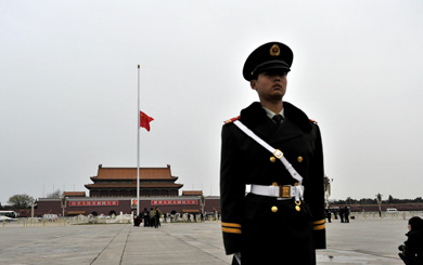 天安門廣場下半旗...