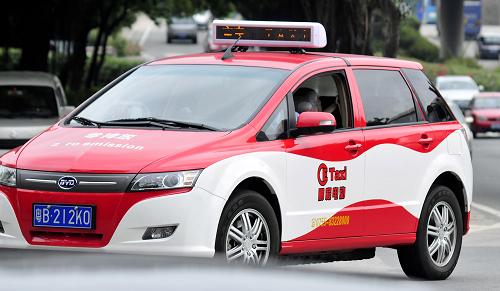 深圳市首批電動出租車已于今年“五一”起上路試運營。該款電動出租車的車型為比亞迪e6,運營不收燃油附加費,快速充電一次約需1小時。測試階段結束后,相關部門將根據測試情況決定是否增加投放數量。 新華社發(袁水靈 攝)