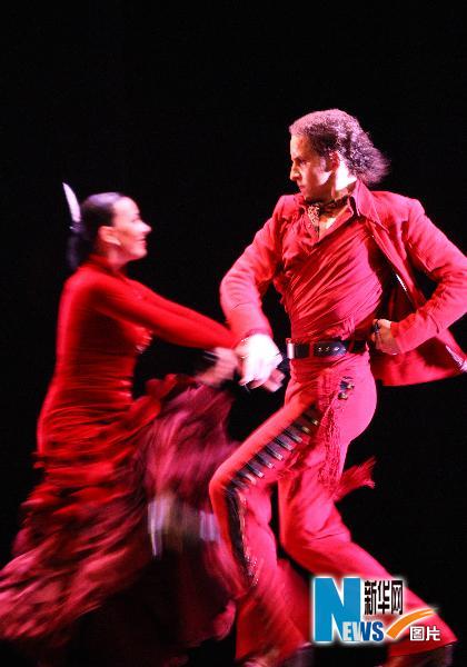 5月13日,西班牙國家芭蕾舞團演員在表演舞蹈。當(dāng)晚,西班牙國家芭蕾舞團在上海世博中心舉行舞蹈表演,演員們激情、華麗的表演帶領(lǐng)觀眾體驗西班牙風(fēng)情。 新華社記者王迎攝