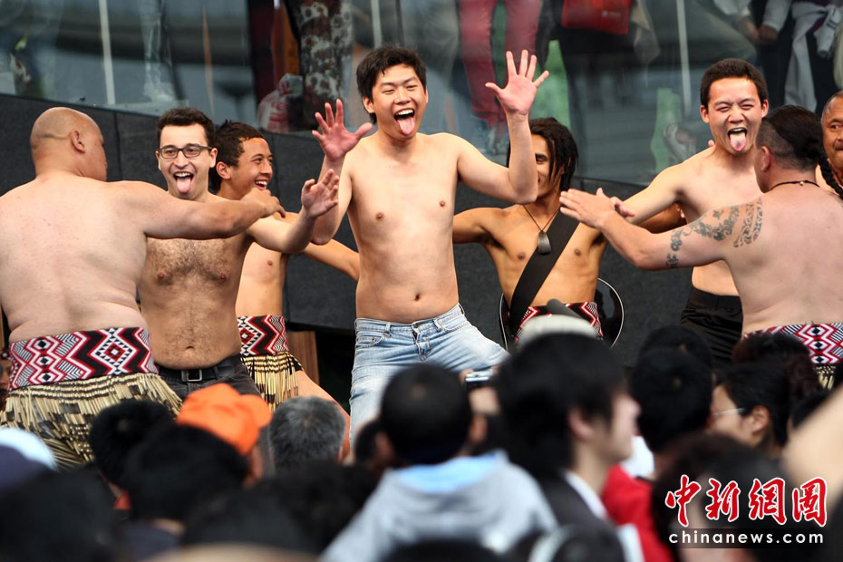 世博趣圖:游客赤膊上陣學跳毛利舞 ( /4)