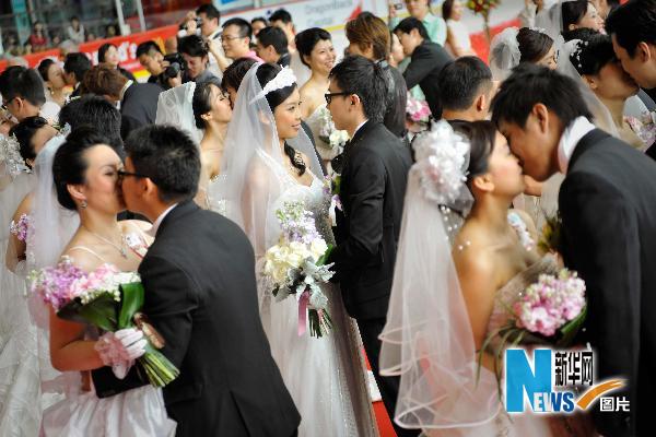 當日,香港一家商場邀請50對新人,舉行百人集體婚禮。 新華社記者 呂小煒攝