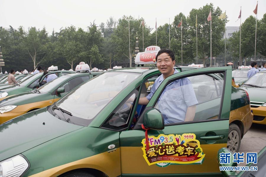 這是6月3日在山西省晉城市文體宮廣場拍攝的“愛心送考”啟動儀式現場。高考期間,晉城市凡貼有“愛心送考車”標識的車輛,都將為考生提供免費服務。新華社發(袁文中 攝)