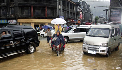 6月4日,一輛本田轎車在南昌街頭卡在塌陷路面上動彈不得。當日,南昌市昌南大道與迎賓北大道交叉口附近路面突然發生塌陷,一輛過路小轎車被卡在洞口處。據現場目擊者稱,駕車男子因受輕傷被送往醫院。為了避免再次發生意外,南昌交警部門對此路段實施了交通管制。有關部門正在對路面塌陷原因展開調查。新華社發(熊家福 攝)