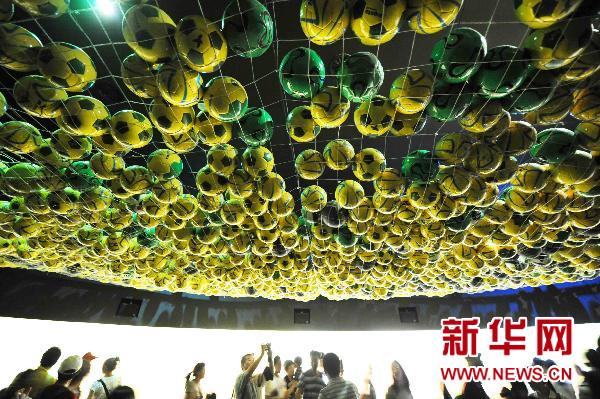 當日,2010南非世界杯開幕。在世博園內,2010世界杯東道主國南非以及足球大國巴西、阿根廷等國家的展館受到游客的熱捧。新華社記者王建威 攝