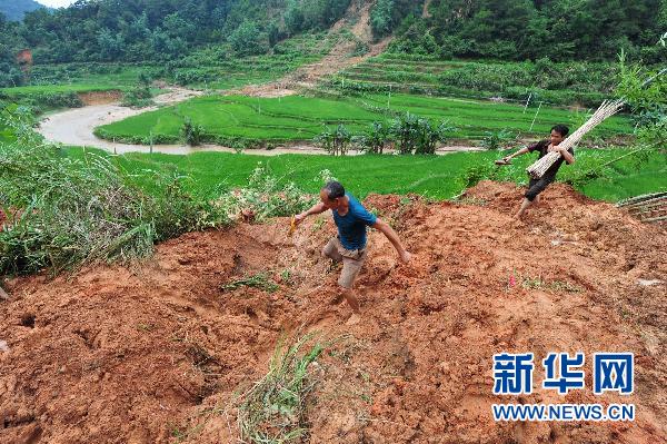 6月16日,廣西蒼梧縣沙頭鎮(zhèn)道路被泥石掩埋,村民艱難前行。據(jù)廣西壯族自治區(qū)民政廳16日17時統(tǒng)計,連日的強降雨已造成廣西7市24縣(區(qū))受災,受災人口合計63萬人,累計緊急轉移安置9.82萬人;農(nóng)作物受災面積33.99千公頃,其中成災15.05千公頃,絕收1.5千公頃;因災倒房2023間。新華社記者黃孝邦攝