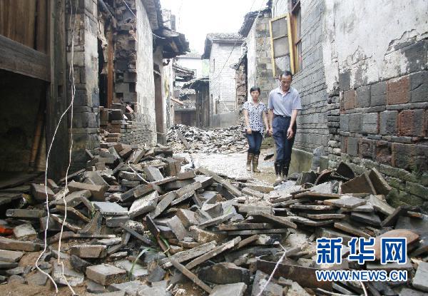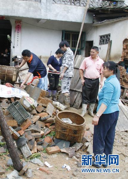 6月19日,洪水過(guò)后,福建省邵武市肖家坊鎮(zhèn)將石村村民開(kāi)始清理自己的家園。 6月18日以來(lái),福建省邵武市遭遇暴雨襲擊,其中8個(gè)鄉(xiāng)鎮(zhèn)在不到10小時(shí)內(nèi)的累計(jì)降雨量超過(guò)100毫米,強(qiáng)降雨導(dǎo)致部分通村道路塌方中斷,低洼處民房受淹,有5個(gè)鄉(xiāng)鎮(zhèn)停水停電、通訊中斷,全市互聯(lián)網(wǎng)通訊中斷。目前,各項(xiàng)救災(zāi)工作緊張有序展開(kāi),棉被、大米、柴油等救災(zāi)物資送到受災(zāi)群眾安置點(diǎn),3000余名受災(zāi)群眾得到妥善安置。新華社發(fā)(林傳仁 攝)