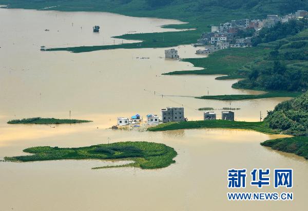 7月1日,在廣西凌云縣邏樓鎮祥福村百合屯,通往外界的道路全部被洪水淹沒。 6月27日至29日,廣西壯族自治區百色市凌云縣遭遇300年一遇的強降雨天氣過程,造成全縣嚴重洪澇災害。因為洪水無法外排,目前凌云縣邏樓鎮出現嚴重內澇,洪水深近兩米,通往外界的道路全部中斷,部分村屯被圍困,有6673人受內澇影響。新華社記者 周華 攝