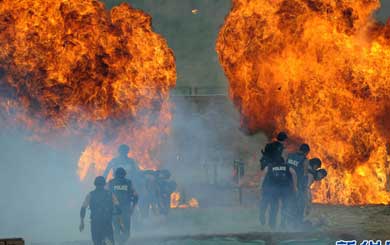 7月2日,在鳥巢上空艱難生活60天之后,高空王子阿迪力告別鳥巢回到地面,同時創(chuàng)造了60天累計連續(xù)走綱絲時間最長吉尼斯世界紀錄。圖為阿迪力用吊威亞的方式回到地面。中新社發(fā) 富田 攝
