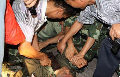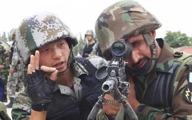 7月5日,3位女孩在天津大學噴泉廣場戲水降溫避暑。